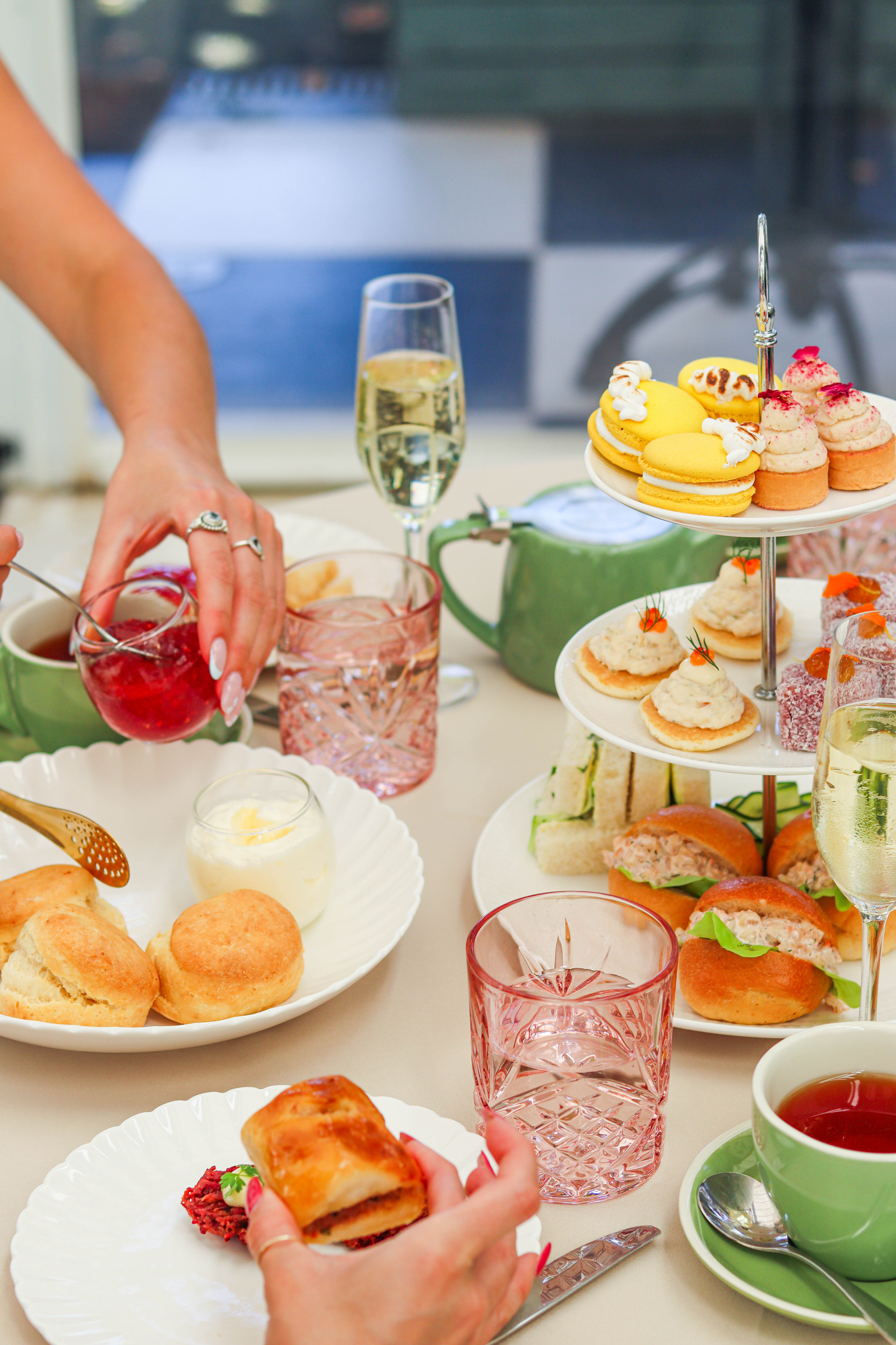 Enjoy an assortment of sweet and savoury delights, including assorted finger sandwiches, a variety of desserts, and freshly baked scones with compote jam and cream for a 2-hour duration.